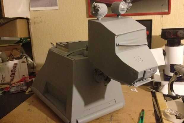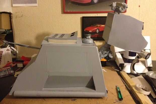 Yo también enmascarado la sección ojo tan colocar el MP4 jugador más tarde fija directamente a la cartulina. El color es de curso opcional, así que para obtener el color gris que ves en las fotos, me fui con el primer aerosol gris liso. Es más barato que la pintura y es una cortina agradable del gris. Usé dos latas de 500ml para obtener 6 capas completos buena sobre todo el cuerpo y cabeza.