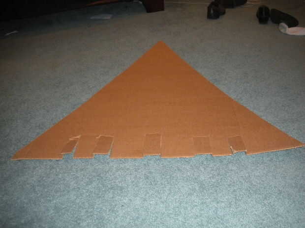 1. corte un 3 pies X 3 pies X 3 pies triángulo pedazo de (S1) solo manejan tarjeta detablero con cuchillo para uso general en la almohadilla de corte (T1) (T2).