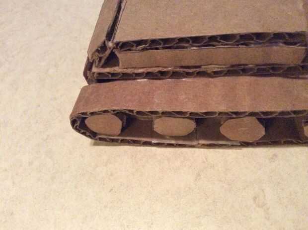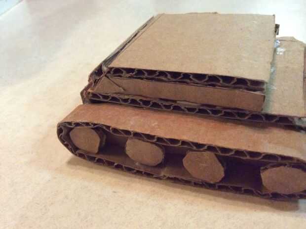Usted puede haber notado los agujeros pequeño triángulo a cada lado del tanque. Para fijarlos cortar unos triángulos ligeramente más grandes que los agujeros y luego presione en los orificios con algun pegamento secó en la parte posterior.