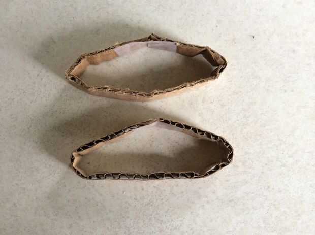 Saber que sus piezas se han cortado su tiempo para montarlos. Tomar el 8" por 1/2" y luego doblarlas en un círculo y cinta al final juntos formando un anillo. Después de que tome el anillo y tire de ambos extremos con un dedo enganchado en el interior de cada extremo, esto debe crear algo que se parece a la foto de arriba (Nota quizás tenga que utilizar la uña para hacer una curva suave a cada extremo) cuando es tomar 4" por 1/2 rectángulo, redondo y acortar los bordes para que se ajuste dentro de los anillos que acaba de crear. Una vez que se adapta muy bien deben tirar superior e inferior del anillo estrecho. Ahora que cabe retirar del anillo y cubrir el entero borde con pegamento e introdúzcala en el anillo. (Nota que es muy probable que usted tendrá que colocar un peso encima de la banda de rodadura para mantenerlo en su lugar mientras se seca)