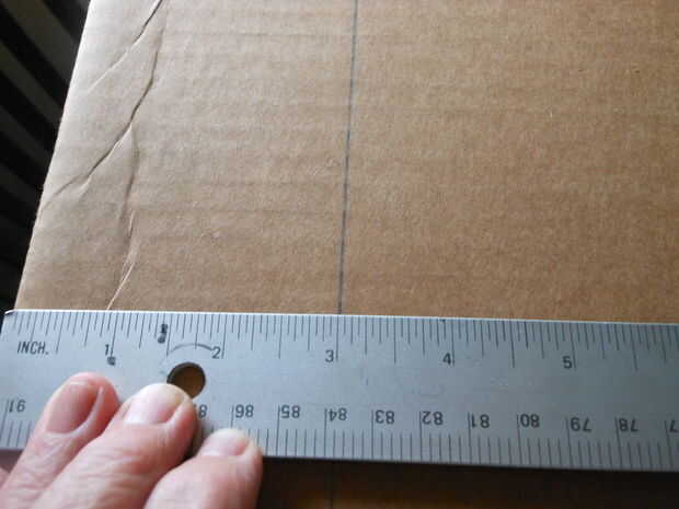 Mida 3 pulgadas (7,5 cm) desde la parte inferior de la caja y dejar una marca con el lápiz.  Hacer esto varias veces en los 4 lados de la caja.  Conectar los puntos para que sean una línea recta todo el camino alrededor de la caja.