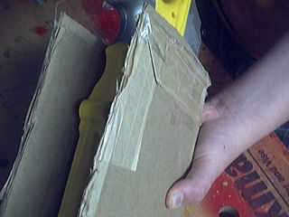 Primero cortar cartón en buen tamaño para trabajar con y abrigo alrededor de la pistola con el mango asomando, luego tome un pedazo de cartón del tamaño de la parte abierta y cinta en conseguir un pedazo de cartón para la parte inferior y cinta en.