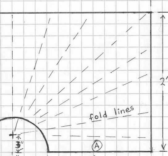 Tenga en cuenta que no es el punto donde estas arrugas deben cumplir en el punto medio del medio círculo, pero el todavía teórico punto medio del círculo que vas a crear cuando se une a los lados. (Ver diagrama). En mi caso este punto subió cerca de tres pulgadas de mi punto central original. Pero esta aproximación funciona bien, para no sudarlo.