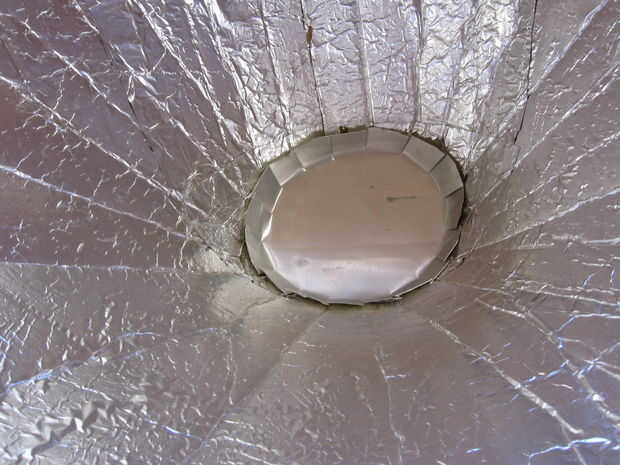 Si no tienes aluminio láminas práctico, no hay ninguna razón por qué una ronda de cartón cubierto con papel de aluminio no funcionará igual de bien. Solo que sea lo suficientemente grande como para que no empuje a través de la abertura. Una tartera de aluminio ligero también podría hacer el truco con ningún trabajo en absoluto, si la abertura es de tamaño para ajustarse.