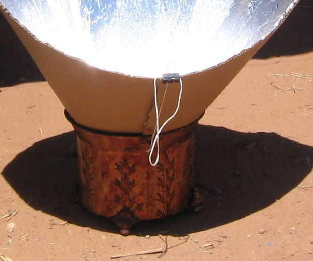 Coloque el embudo solar extremo angosto hacia abajo, dentro de su cubo y apuntar hacia el sol. Yo muy útiles los "cuernos" del embudo. Idealmente desde un punto de vista el sol debe quedar a mitad de camino entre los cuernos, y cuando se mueve 90 º alrededor del embudo, los cuernos deben apuntar unos cuantos grados más altos (si es por la mañana) o inferior (si por la tarde) que el sol. Así ya tienes una hora o así antes de que usted necesita reajustar el objetivo.