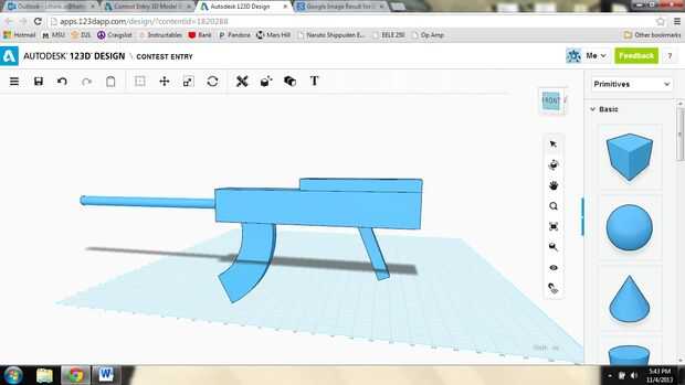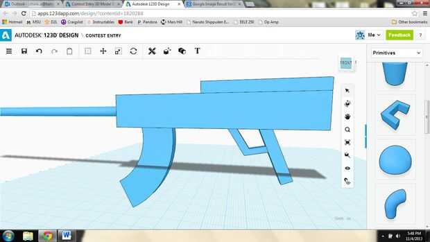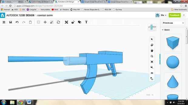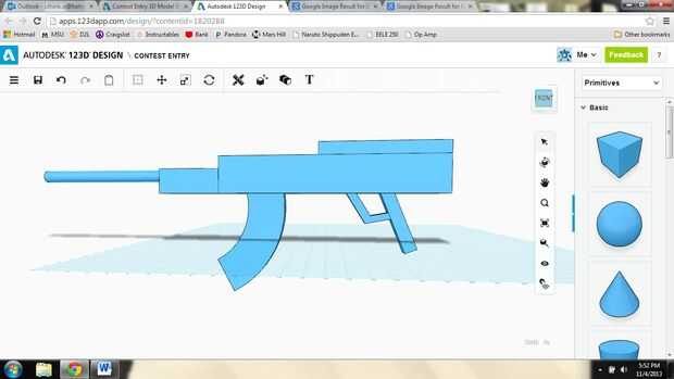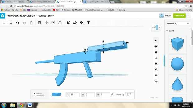 Bloque decorativo: añadí un bloque, el mismo ancho que el cuerpo, en la parte superior del rifle y luego redondeada de sus esquinas, para dar sustancia al cuerpo.
