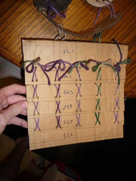 Usé el tradicionales 5 columnas de cordón. Dos agujeros para correlacionar con el debe los agujeros de la correa.