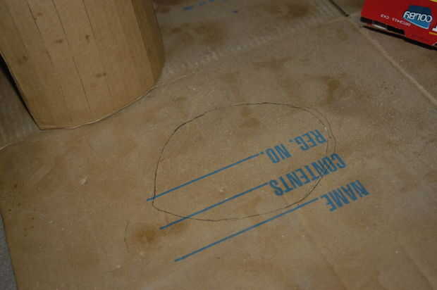 Coloque el cilindro sobre otro pedazo de cartón y traza alrededor de la base de la misma.  Luego se corta el círculo de la cartulina. Luego fije el círculo a la parte superior de la botella con cinta adhesiva o pegamento caliente.