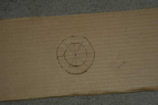 Mida el diámetro de su globo ocular.  Use esto para averiguar la circunferencia del agujero del centro del monóculo.  Marcar un círculo de la circunferencia correcta en la cartulina.  Luego se mide sobre una distancia de media pulgada desde el círculo que ha trazado y dibuja otro círculo para formar el monóculo.  Luego corte dos círculos.  El monóculo ahora puede ser pintado o coloreado.