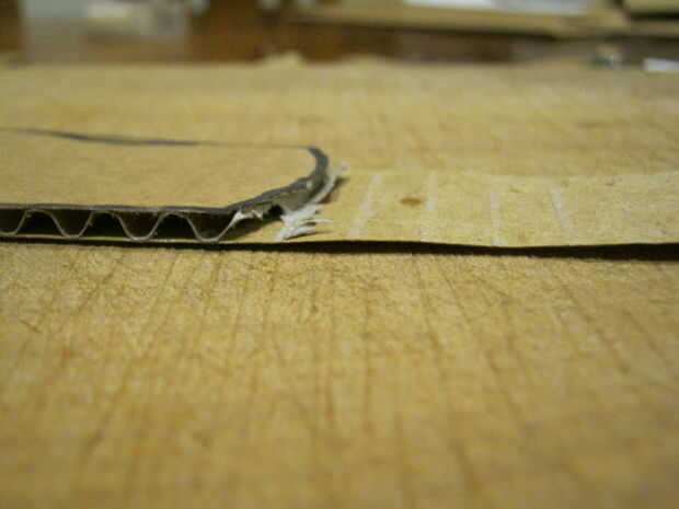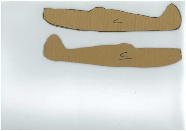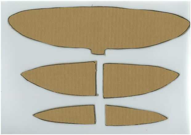 Una vez que está todo impreso, te recomiendo cortar las plantillas y a su alrededor en el cartón en lugar de pegarse a la cartulina, como deberás usarlos dos veces cada uno, para hacer el modelo más simétrico hacia abajo de la línea central. Cortar las piezas. No tienes que ser super preciso en este paso, usted puede siempre recortar las piezas al pegarlas todas juntas. Para las secciones con las rayas en ellos, tienes que cortar la mayor parte de la cartulina, dejando solamente la capa opuesta de papel (ver las fotos). Para los estabilizadores horizontales (en la cola del avión) tendrás que despegue el papel a ambos lados de la parte acanalada de la cartulina, para que usted puede haber mejor superficie para pegar al plano (ver también las fotos).