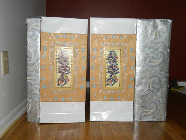 Tomé una pieza elegante de obras de arte que muestra una procesión de boda en las puertas. Encontré estos en cajas de dulces (de India). Pero no eran de la misma altura como las cartulinas de la puerta así que primero pegó papel regalo blanco y luego se coloca el arte de la procesión de la boda en el centro.