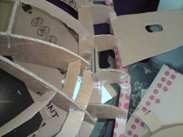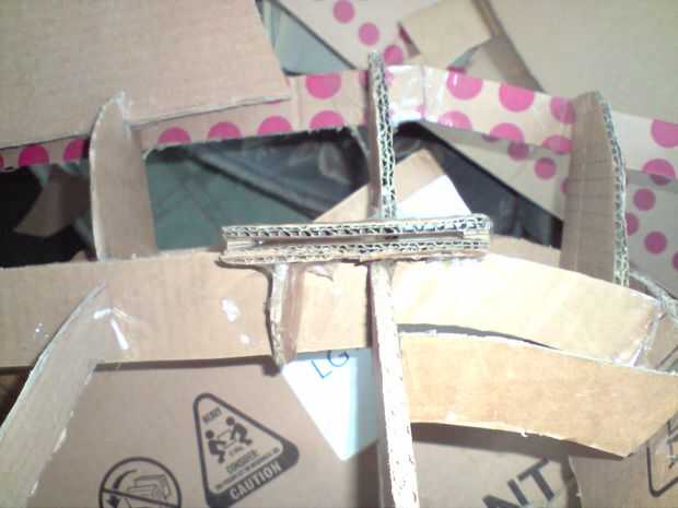 El alerón está hecho de dos pedazos gruesos de tarjeta conectado a las principales estructuras en las zapatas estacadas con pinchos de kebab.