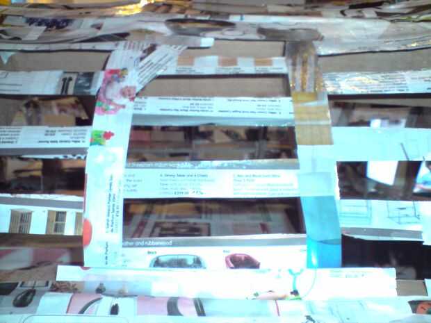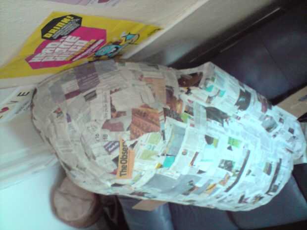 Para las secciones de frente y final llenan plástico bolsas llenas de periódico arrugada y enchufe los boquetes, apriete a la cinta en el lugar y forma, éstas se quitarán después.