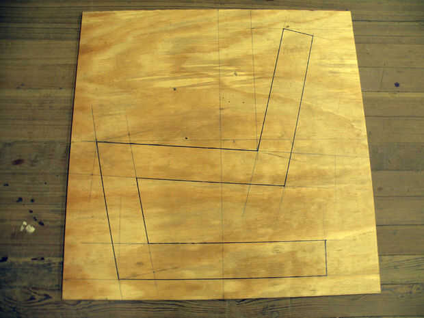Para empezar, dibujar el perfil de la silla en una pieza de contrachapado. Las piezas que utilicé fueron poco menos de tres pies cuadrados. Puede imprimir los dibujos del primer paso para replicar esto exactamente, pero también podría diseñar su propio. Si diseñando tu propia, tener en cuenta algunas cosas: la longitud de la pieza que descansa sobre el terreno debe ser tan largo o más que la total silla para mantenerlo de inclinarla hacia atrás excesivamente; la pierna, o pieza vertical, debe ser tan corto como sea posible para la comodidad; y el asiento debe también ser corto para evitar actuar como demasiado de una palanca.