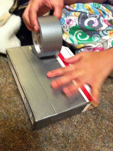 Cartulina y cinta cámara caja monedero (4 / 6 paso)