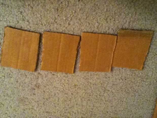 Cortar la cartulina en 4 (cuatro) igualdad de piezas. Apilarlos.