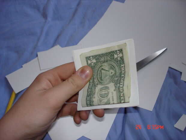 Un rectángulo de aproximadamente 1 cm más grande, entonces el dólar por los cuatro costados.