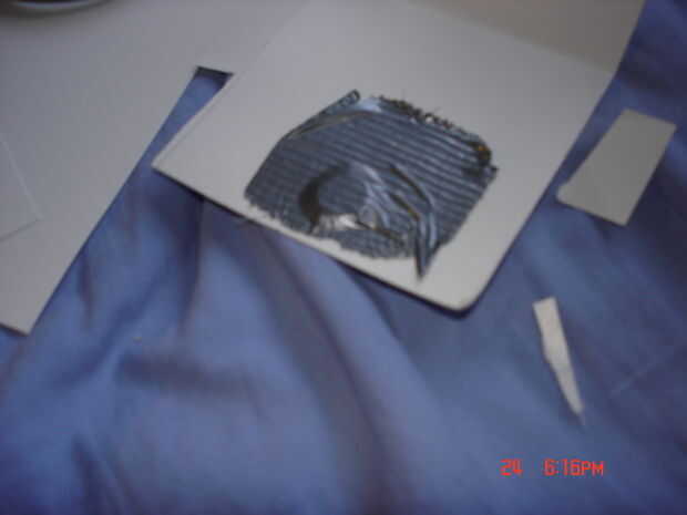 Coloque las piezas al azar de cartel sobre el imán y la cinta hacia abajo. (estas capas extras ayudan a proteger las tarjetas de crédito)
