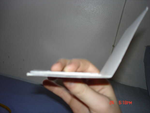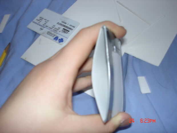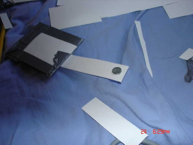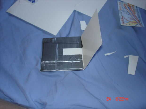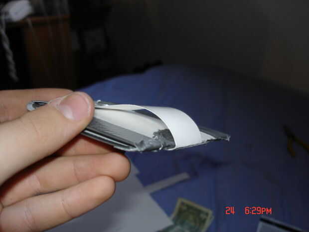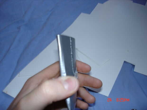 Cinta la pieza doblada en la parte superior y de un lado, dejando sólo uno de los lados untaped. (ranura de tarjeta de crédito)