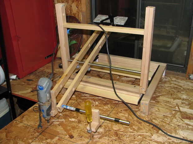 Ahora sólo tengo que trabajar en la precisión. El eje x (movimiento de izquierda y derecho) es bastante agitado en el momento. Me voy hacer el brazo toda la longitud del soporte vertical, por lo que sólo puede moverse hacia arriba y hacia abajo. El nuevo eje x será la tubería que la Dremel se une a. Otra mejora es la incorporación de rodamientos de skate board en los carriles que deben mejorar la fluidez de la herramienta. Así que estad atentos!