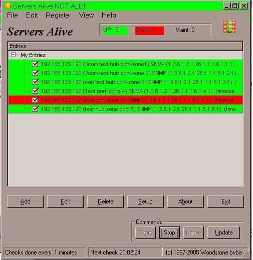 agregar una entrada (máximo 10 por versión) cada entrada tendrá la dirección IP del 3com hub, bonito nombre (Gargae puerta zona 1) para el puerto 1.