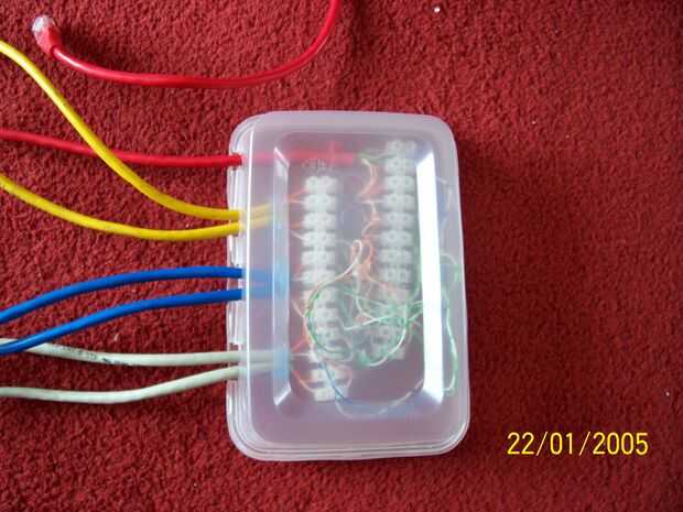 Si usted necesita o quiere una cubierta para conectores, utilice una vieja toma lejos platos de plástico, aproximadamente 6 pulgadas por 4 pulgadas por 2 pulgadas. Usando el par de sujeción de cable barato de colza cables de lazo en la tapa de la unidad de desplazamiento para que pueda conectar sus sensores externos.