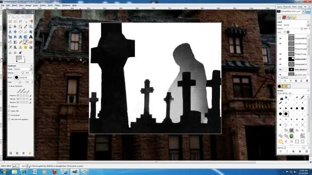 en este tutorial cubriremos cómo hacer la más escalofriante casa embrujada por ahí usando un editor de imágenes sencillo y gratuito llamado GIMP. Estas fotos hacen grandes centros de mesa y tapices!Paso 1: Añadir nubes No será demasiado difícil.Una v
