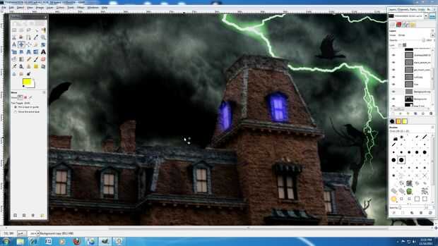 1: En las capas y el pincel de la herramienta de la caja, haga clic en el capa de casa y duplícalo. (Asegúrese de que la nueva capa de la casa es encima de la capa vieja de la casa).