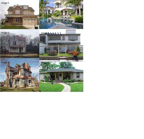 Imagen 5: Esta imagen es una mala imagen a utilizar. Esto es porque tiene arbustos y arbustos delante de la casa; hay otras casas en la imagen; y hay una valla gigante que atraviesa la mayoría de la foto.