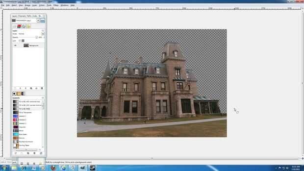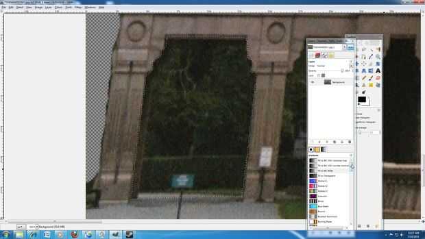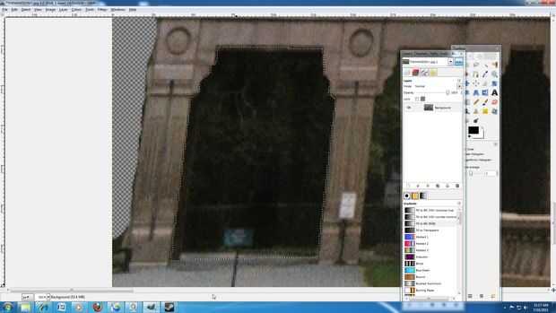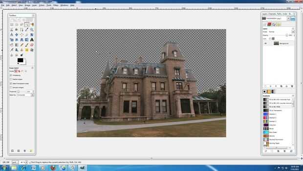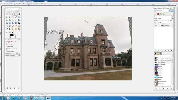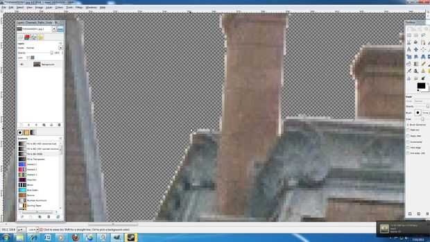 3: Mantenga presionada la tecla Mayús y continuar hacer clic en el cielo hasta que todo quede seleccionado. (La tecla shift significa más. Así que hacer su primera selección manteniendo pulsada la tecla Mayús y seleccionando otra área GIMP añadirlos juntos) Si desea que la magia selecciona herramienta son zona no quiere Presione Control + X para deshacer el paso anterior.