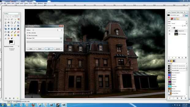 18: Hacer la 2pixels de la radio y pulsa ok. (Lo que hace esto es que desenfoca el borde de la casa para que se funde mejor en el cielo tormentoso)