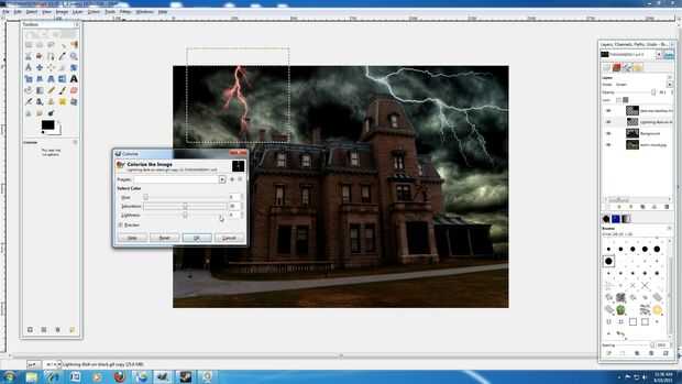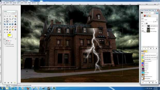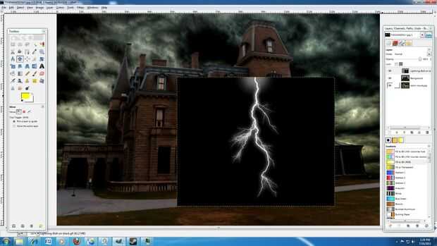 4: En la caja de herramientas GIMP selecciona la herramienta de escala y escala el aligeramiento para el tamaño que desee. Entonces otra vez en la caja de herramientas GIMP selecciona la herramienta mover y la iluminación a la zona donde usted desea.