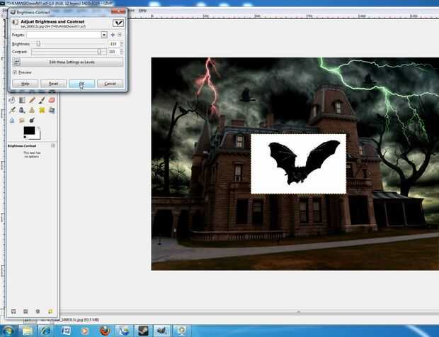 3: Cambiar el brillo y el contraste de la foto va: barra de herramientas GIMP > colores > brillo y contraste. Cambiar el brillo y el contraste a + 110 -110.