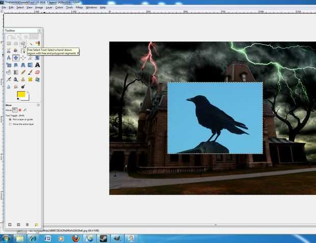 1: Abra el cuadro del cuervo percha como una nueva capa. Asegúrese de que esta capa está por encima de todo las otras capas.