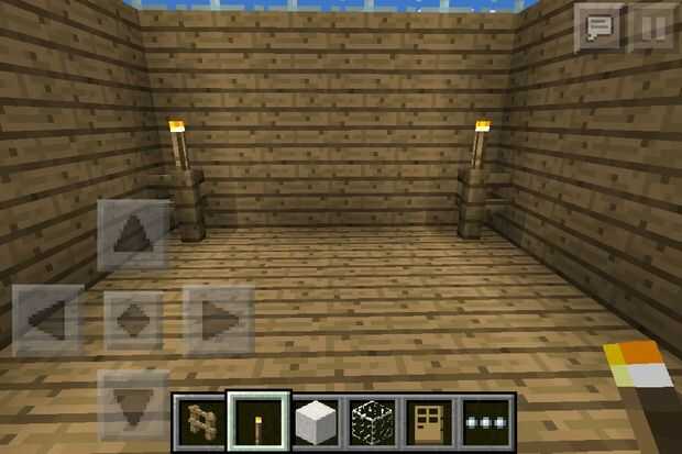 En las esquinas, poner vallas y top con antorchas. Puede organizar el interior lo que quieras pero deja a un lado de la escalera. Una cuadra de la cerca de la esquina, colocó una escalera. Hacer esto hasta llegar a la pared. Ahora desde la pared a su lado, hacer dos líneas de bloques de llegar a las escaleras. En la parte superior puede poner lo que sea. Sillas, camas o cosas se puede colocar en el suelo.