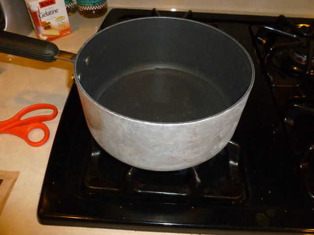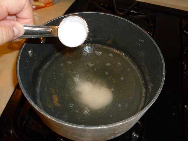 - Después de que la gelatina se disuelva, añadir la taza restante de agua y la sal.