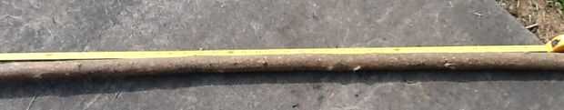 Mientras que el medidor de cinta hacia fuera y al lado de la madera, me tomé el tiempo para marcar el centro de 25 pulgadas con mi cuchillo.