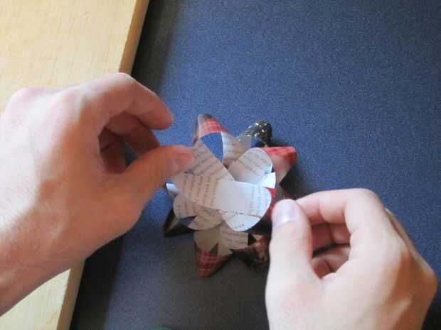 materiales:-Par de guantes de lana blanca, crema o marrón-2 camisetas llanas, azules, rojos o verdes-Aguja-Hilo que coincida con los guantes-Una yarda de tela marrón claroHierro-en la cinta de costura-Lápiz costura-Tul blanco-5 arcos presente de Navi