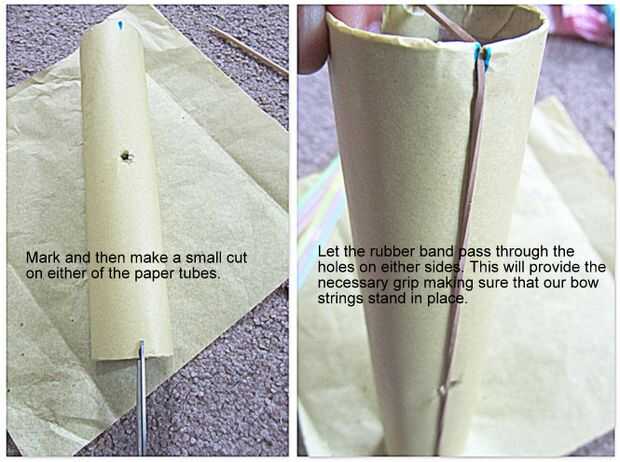 • Hacer a un lado de la banda de goma fuerte y el otro lado sea elástica. El primero impartirá el agarre necesario para la cuerda del arco y el último se asegurará extender nuestra flecha a la longitud deseada.