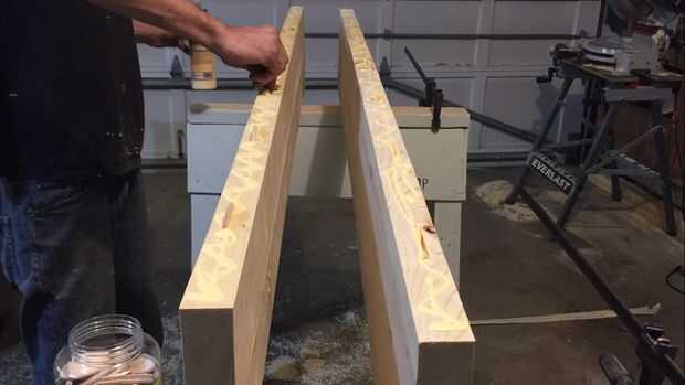 El pegamento siguiente hasta lo usé cauls mantener las juntas planas para que no Haz desalineados en altura y giro hacia arriba. ¡ Mira el video para adentrarnos en este paso.