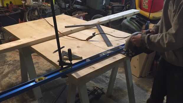 Luego, usando un borde recto, tomó mi sierra circular y cortar una línea recta en el extremo del borde limpiar los bordes y las juntas hasta su longitud final.
