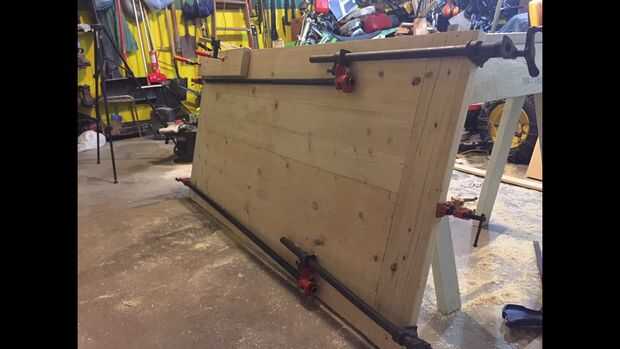 Los extremos del tablero se encendió al igual que el otro ups de pegamento, excepto que esta vez utilicé que dos abrazaderas para abarcar la longitud de la mesa todo para pegar los extremos de la pipa.