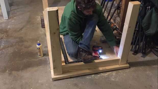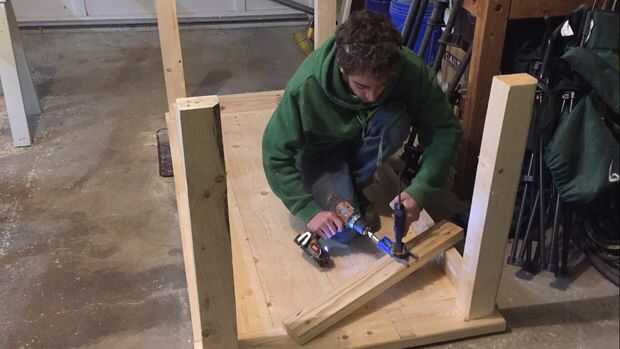 También he añadido una barra separadora en cada pata del extremo para mantener las robustas piernas y a la misma distancia aparte de la parte superior hasta la parte inferior. Os adjunto estos 2 x 4 usando tornillos de agujero de cola y bolsillo.