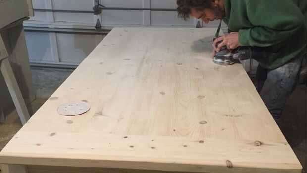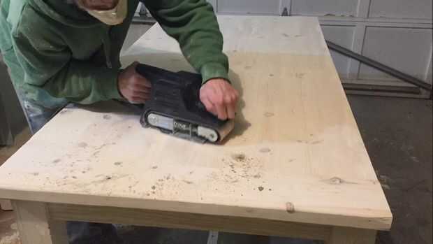 Para salir de las otras irregularidades en la superficie superior que acabo de hacer un montón de lije con la lijadora de banda y la lijadora orbital. Comencé en grano 60 y fue hasta 220 hasta el final.