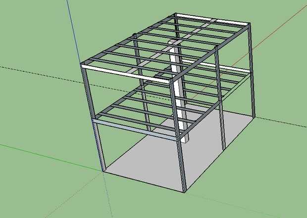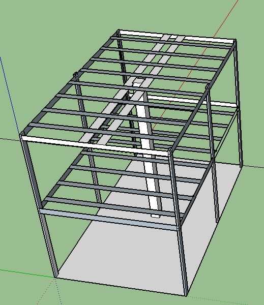 Este paso consiste en la instalación de 2 Central C-canales en el nivel superior. Se utilizan para proporcionar estabilidad a los I-beams Central y también conectar la viga central a todo el marco de metal