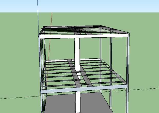 Este paso consiste en la instalación de 2 Central C-canales en el nivel inferior. Se utilizan para proporcionar estabilidad a los I-beams Central y también conectar la viga central a todo el marco de metal