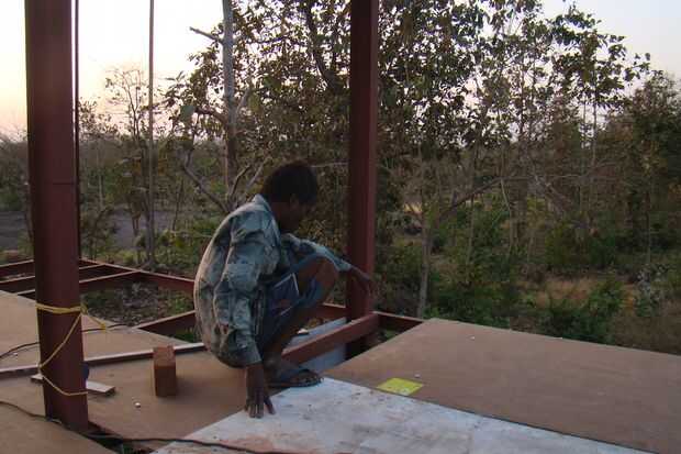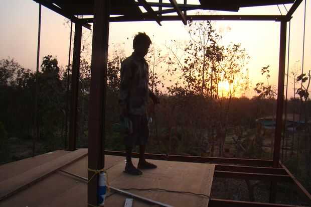En su lugar con los canales de C perno de las secciones de madera contrachapada.