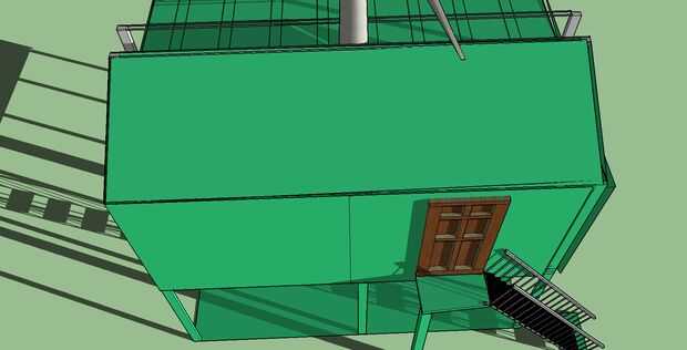 Ya que los tamaños de la hoja de madera contrachapada disponible varían de país a país yo no he especificado las dimensiones de la madera para el techo.