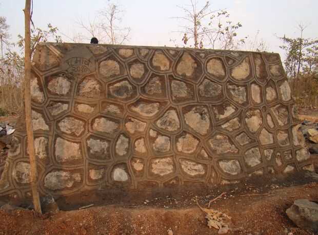 La Fundación de esta estructura fue construida utilizando un método llamado 'Ciruela hormigonado'. Ciruela hormigonado también conocido como ciclópeo hormigonado, es una variedad de Concreting consisten en stones(Plums) tamaño grande con intersticios llenados de hormigón. Este método de Concreting proporciona una base estable. También se utiliza este método de hormigonado y sentar bases sobre superficies irregulares. La ciruela ayuda a reducir el costo de la construcción total de hormigonado.