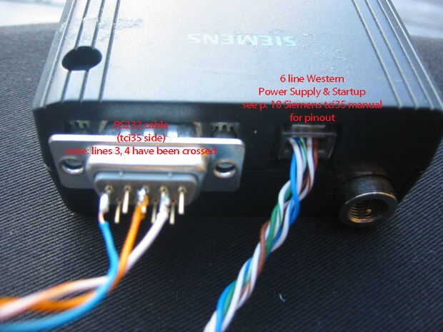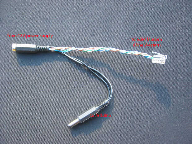 Fuente de alimentación: la alimentación con el conector de 2,1 mm unidades Freeduino y el módem de Siemens. Las líneas están conectadas 1:1 a la clavija de Freeduino. El Western de Siemens enchufe debe conectarse en el pinout que se describe en el Siemens manual pág. 18 ff. El pin PD_IN está conectado a tierra, el IGT_IN va a + 12V.